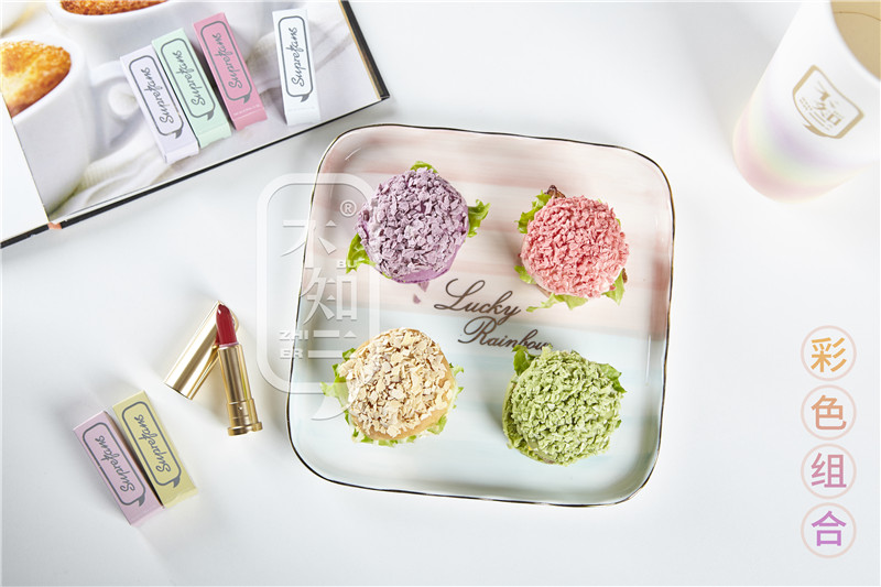 3、不知二口红猪扒包,摆脱市场千篇一律造型,创新推出玫瑰、抹茶、紫薯、原味四重彩色组合包,专为颜值控量身定制!不知二,不止一面!