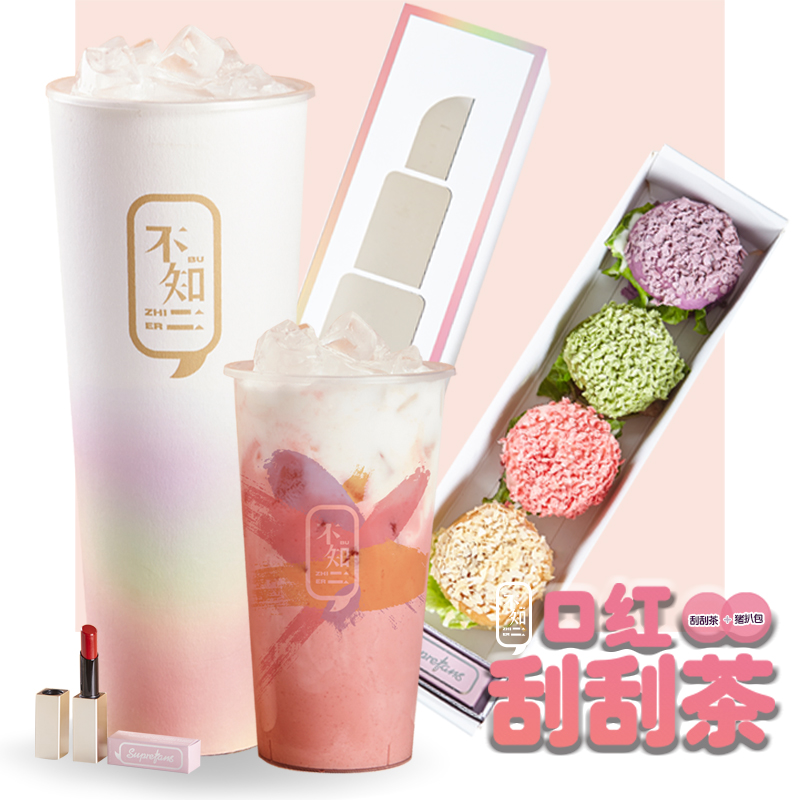 12年餐饮品牌巨献-不知二口红刮刮茶