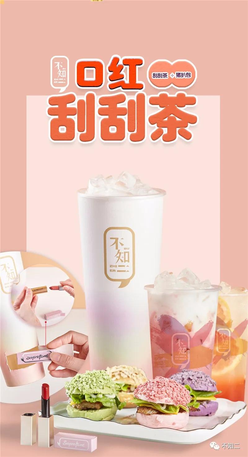不知二独创的口红刮刮茶一经上线便火爆全网,作为茶饮行业中的新宠,不知二的竞争力有目共睹。